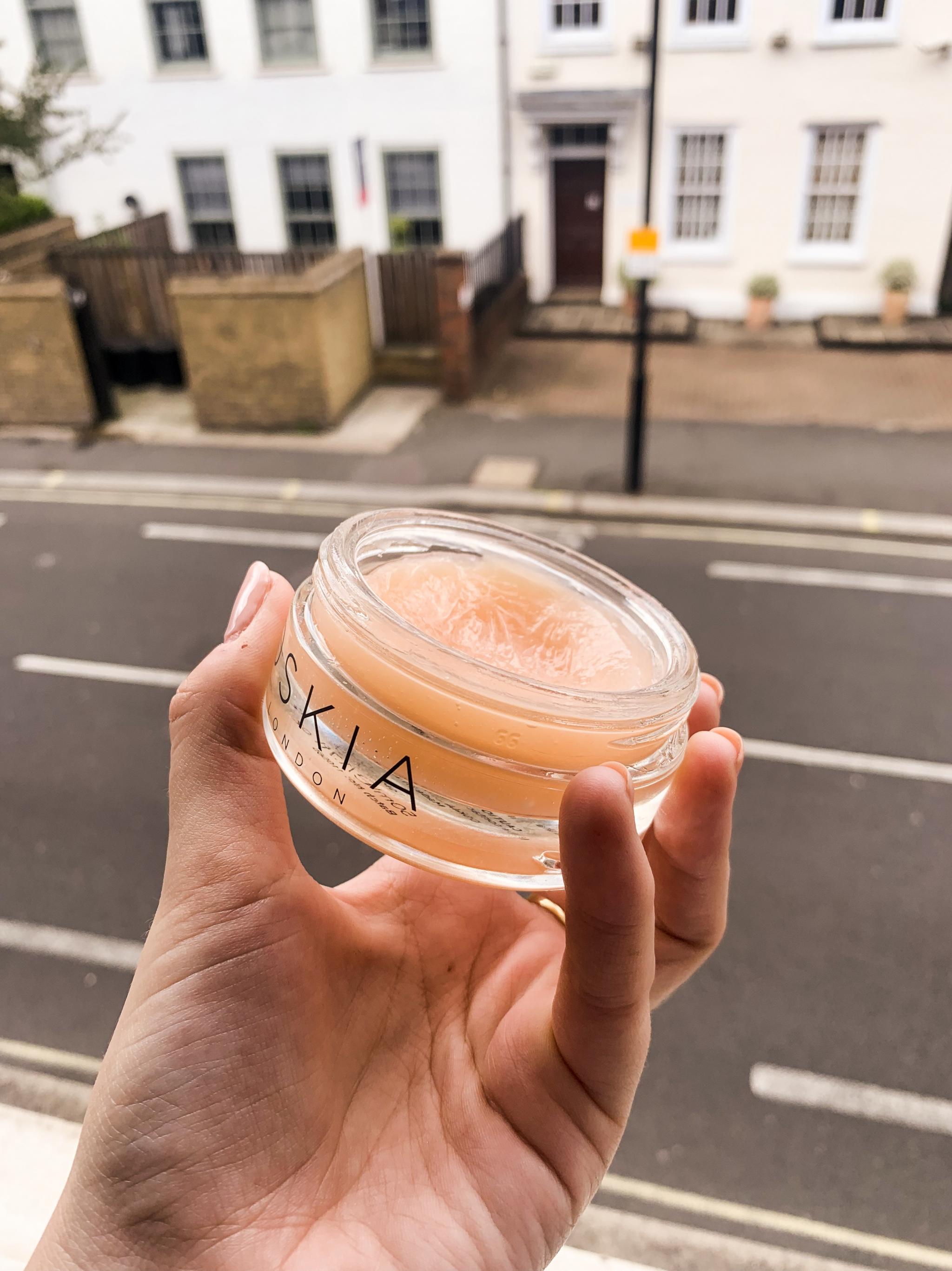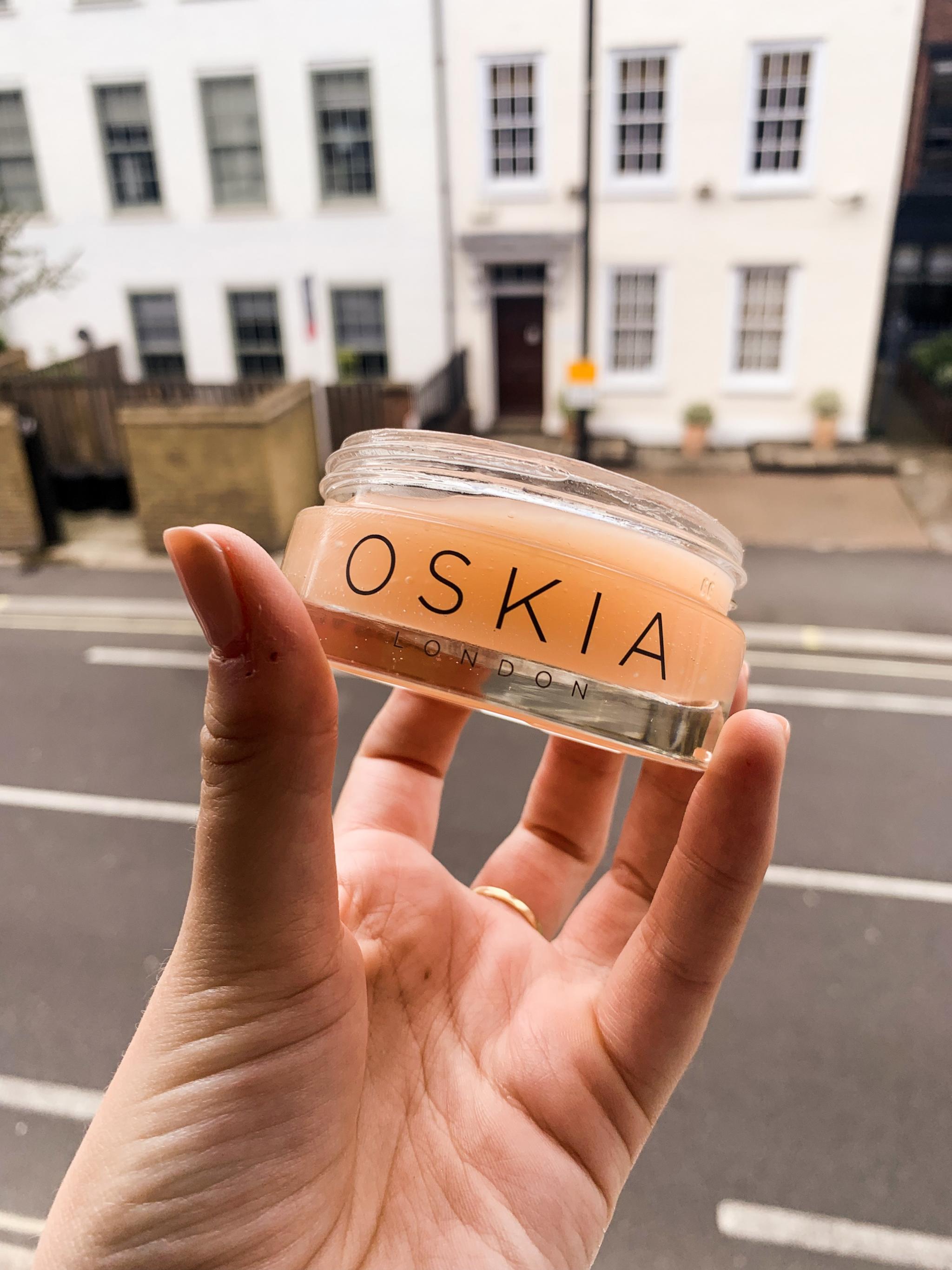 I always use this is my second cleanse so I’ll go in with something like the dermalogica pre-cleanse oil to remove all of my make up in the evening and then I’ll use this Oskia cleanse after and really focus on massaging it into my nose, my chin, my forehead and all those places where my skin tends to get a bit congested and I’ll leave it on my skin for about 30 seconds to a minute maybe in the morning I’ll brush my teeth whilst I wait and then I just take a warm washcloth and instead of kind of rubbing at it I will just pat away any excess and I’m just left with a really soft calm glowing skin.